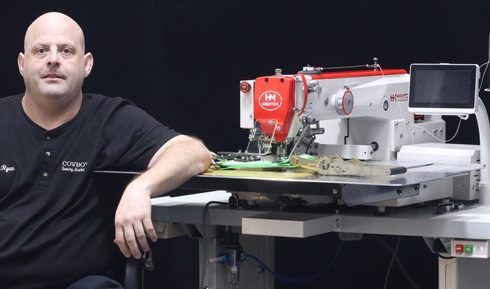 7273CNC/X Extra robust CNC programmable pattern sewing machine for heavy duty Ratchet straps, tie down straps. It can easily stitch 2-4 ply cargo webbing with 3.5 mm of each, using very strong thread up to Metric #7 (=V415, T-400, 1300Dx3). Thus with this automation, you can sew both ratchet lashing straps and heavy duty lifting slings, by changing the jig/clamp. In many cases, 2 automated sewing machines can be run by a single operator, greatly reducing labor cost.