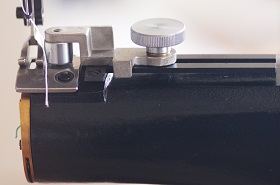 #CB03 Presser foot with right compensating guide: this spring loaded edge guide presser feet is used for creating an even stitch along the edge of the leather