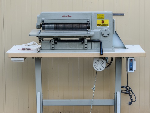 La única máquina profesional que existe en el mercado. Tiene un marco firme de hierro fundido y una cuchilla hueca pulida de 6" de largo. Fácil de ajustar para dividir el cuero en forma pareja y de cualquier grosor. Fabricada para el verdadero profesional.