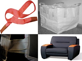 Applications: marine upholstery, furniture upholstery, parachutes, sails, carpets, polyester slings, cargo lashing strap, spanzet, military tents, tarpaulins, awnings, lorry side covers, bulky quilting & beds, FIBC, Big Bag, Q-bag, Bulk Bag, Jumbo bag, container bags.